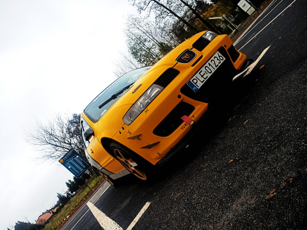 Seat Leon 1m wzorowany wersją torową Supercopa. Silnik w skrócie stroker 1.7, dół polo 6n2Gti osprzęt Vw + Renault. Wyczyszczony z wszystkich eco udziwnień. Skrzynia przelozenia z tdi 5biegów + lsd. Buda tył dokładka Ms design, przód zderzak cupra + zapinki push clips, ori błotniki z Portugalii z wersji torowej, felgi alutec 17 + dystanse, wyloty maski Focus rs + zapinki na kluczyk ściągane z Japoni. Pojedyńcza wycieraczka (docelowo będzie startować pionowo), auto pozbylo sie rdzy + nowe malowanie, brakuje tylko oklejenia lusterka dtm + adaptery, owiewki heko. Progi wlasna inwencja.