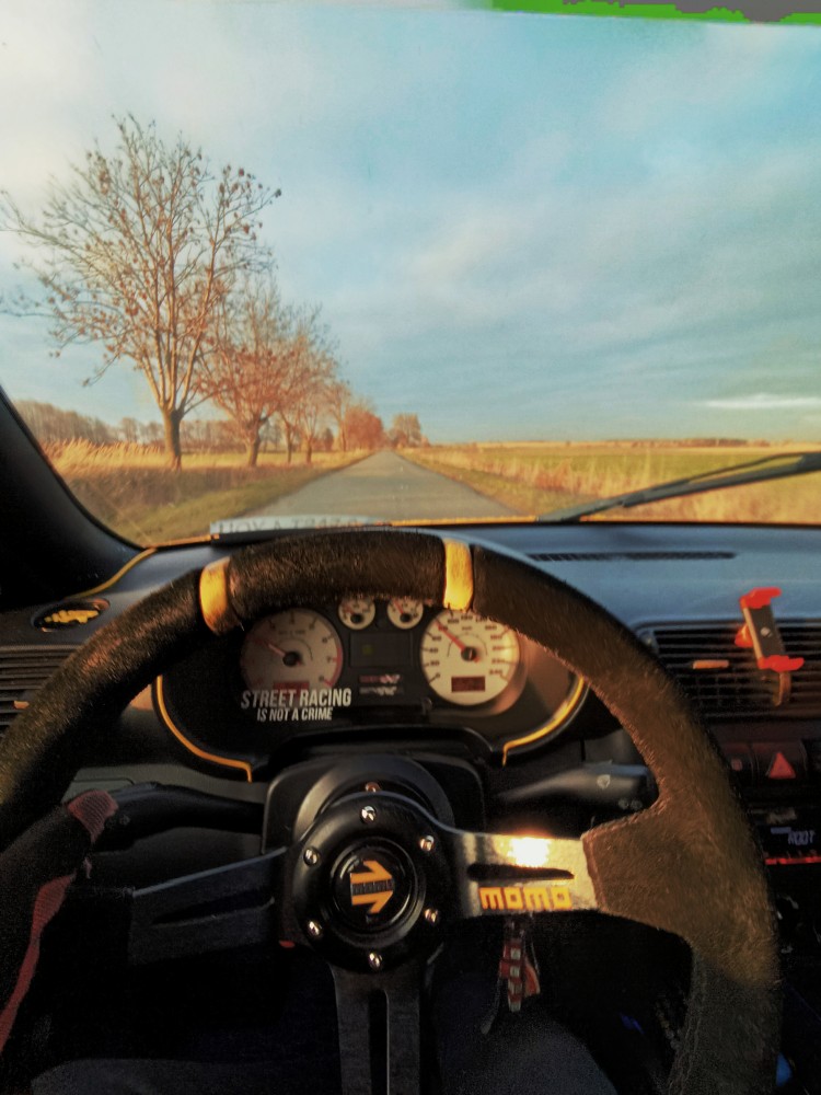 Wnętrze: brak poduszek, kiera zamsz momo, naba slide slim + quick realese turboworks, kubełek kierowcy Monza bez mozliwosci regulacji, sztywno do budy, reszta fotele + kanapa top sport, rozpórka tył. Jako że auto służy jak narazie jako daily, nagłośnienie Jbl + 2x subwoofer jbl + wzmacniacz mac audio, wygłuszone wnętrze. Aktualnie przygotowania pod swap 2.3 vr5 i uturbienie.